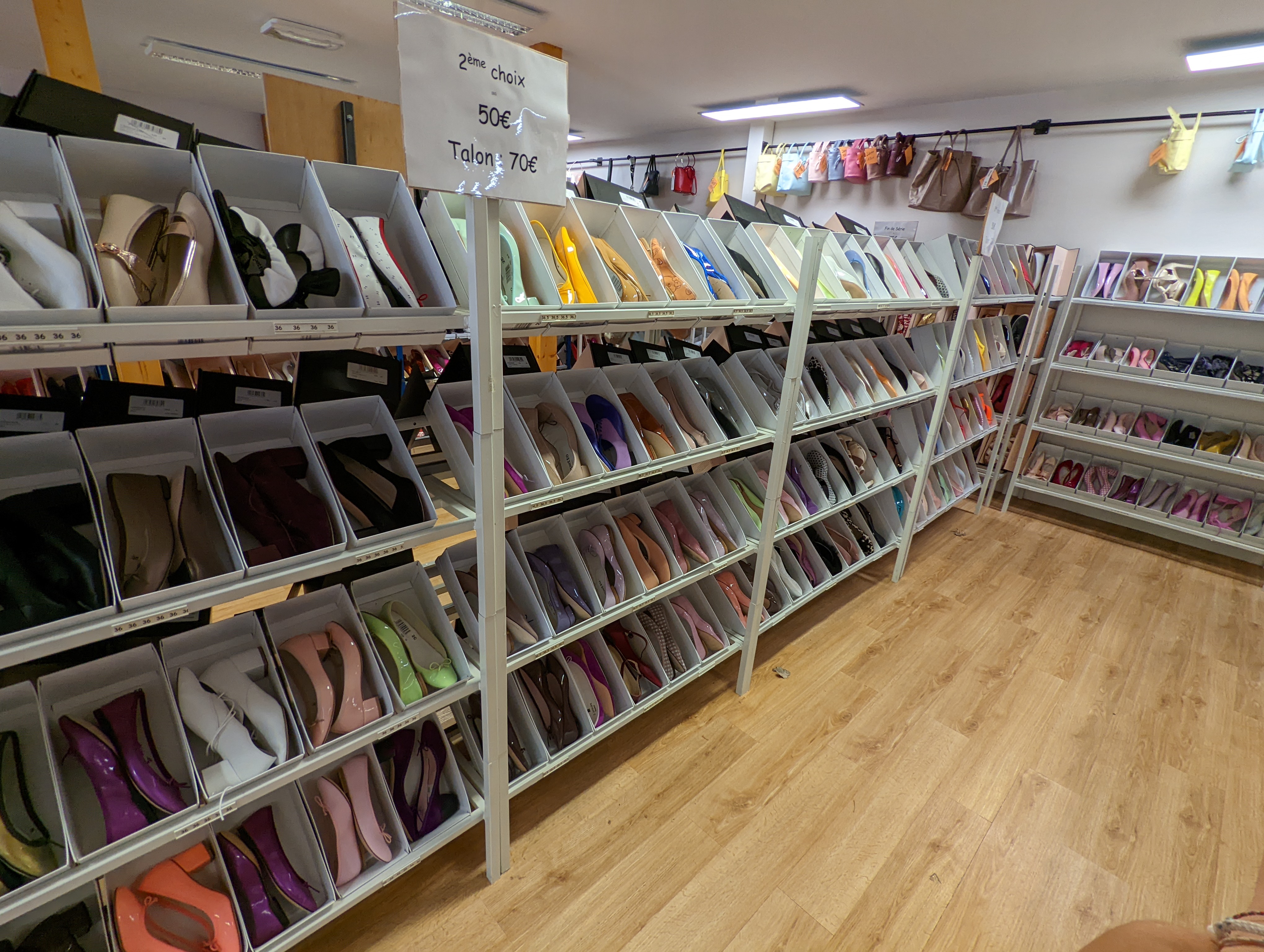 Choix impressionnant de ballerines ! À des prix très doux grâce au second choix. Dommage qu'il y ait très peu de choix en chaussures à talons
